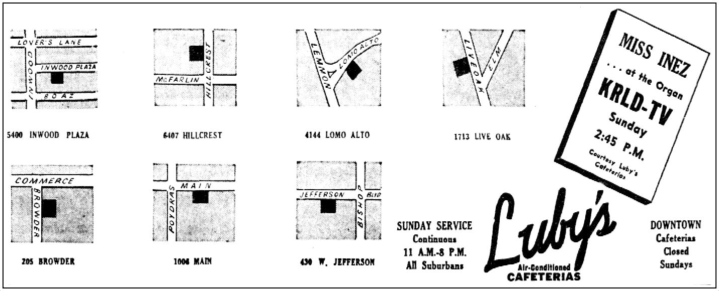 Drawing and article announcing the new Temple Emanu-El are from the Texas Jewish Post (Sept. 30, 1954), here. (UNT’s Portal to Texas History has fully-scanned issues of the DFW-centric Texas Jewish Post — 1950-2011 — accessible here. All issues are searchable, and all have articles, photos, and ads — it is a fantastic resource.)