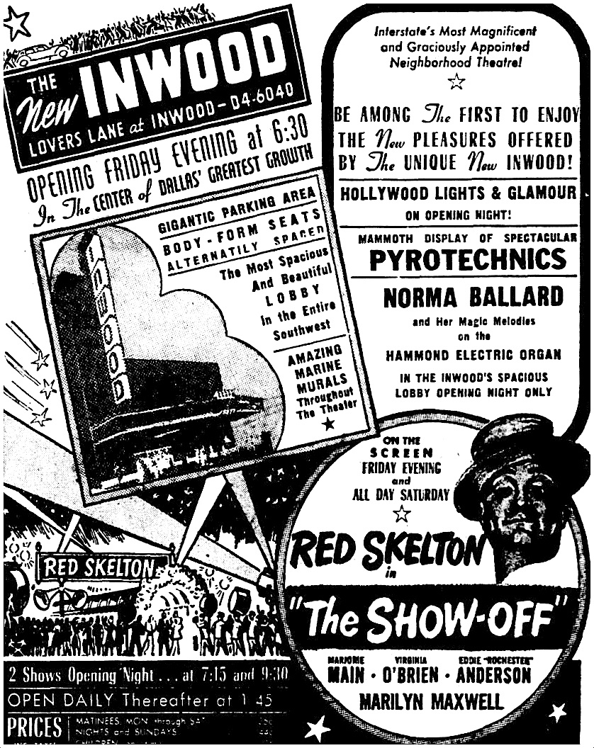 1. THE HIPPODROME THEATER (above), 1209 Elm Street, designed by architects Otto Lang & Frank Witchell. Built along Dallas’ burgeoning “theater row” in 1912-1913, the Hippodrome was one of the city’s grandest “moving picture playhouses.” Among its lavish appointments was this odd little tidbit: “Over the proscenium arch there is an allegorical painting representing Dallas as the commercial center of the Southwest,” painted by the theater’s decorator, R. A. Bennett. Below was a fire curtain emblazoned with a depiction of Ben Hur (a “hippodrome” was a stadium for horse and chariot races in ancient Greece). So that was a nice little weird culture clash. Though originally a theater which showed movies exclusively, it eventually became a theater featuring movies as well as live vaudeville acts. As the Hippodrome became less and less glamorous, it resorted to somewhat seedier burlesque acts (it was raided more than once,for employing female performers who were too scantily clad) and the occasional boxing or wrestling match. The building was sold several times and was known as the Joy Theater, the Wade, the Dallas, and, lastly, the Strand. I was shocked to learn this old-looking-when-it-was-new building stood for almost 50 years and wasn’t demolished until 1960 (that façade must have looked very different by then). (See it on a 1921 Sanborn map, here.) (All images are larger when clicked.)
