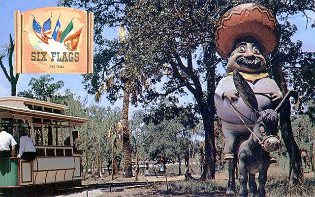 The image above is from a Six Flags Over Texas postcard. The description on the back reads:
