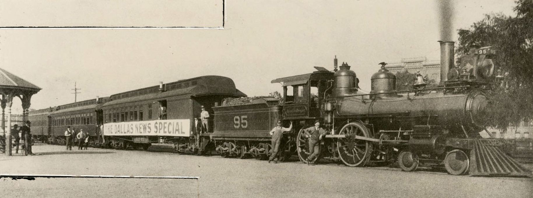Top photo — titled “[The News, First Prize for Decorations, Dallas, Texas]” — is from the George W. Cook Dallas/Texas Image Collection, DeGolyer Library, Southern Methodist University; more info on this photograph (postcard) can be found here.