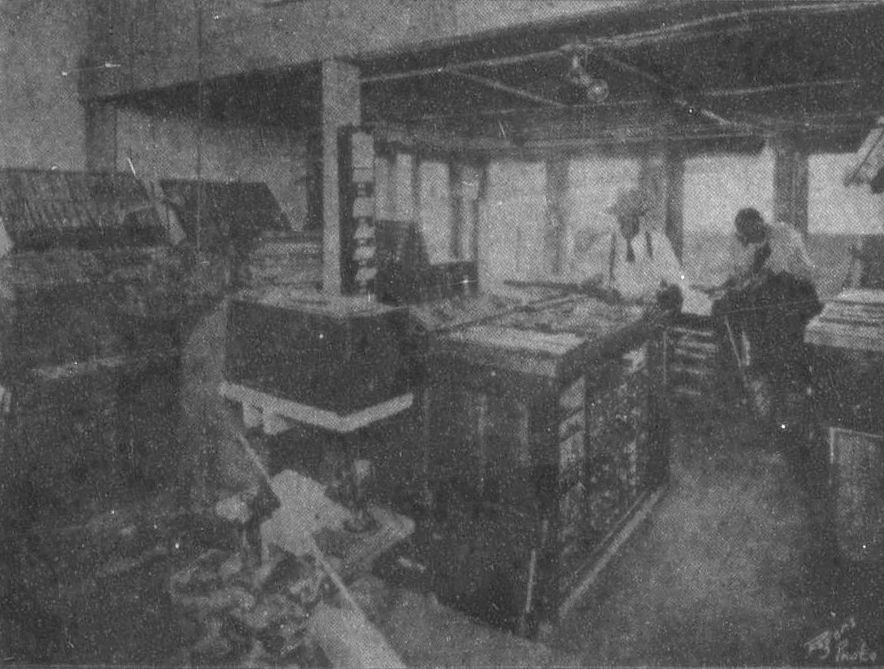 Every piece of machinery in the house is operated by its own individual electric motor. Power is supplied from two immense engines and generators combined, the engine room being one of the show places in the building, having a metal ceiling and white glazed brick on the walls, with a cement floor. The press room contains two three-deck presses, one quadruple press and one sextuple press.