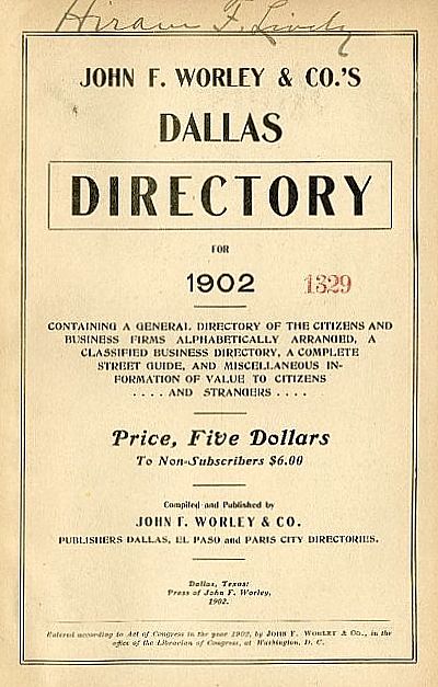 And then it was just a tedious slog through the Dallas Herald archives (not to be confused with the Dallas Times Herald archives), the Dallas Morning News archives, and old city directories. Here’s what I found.