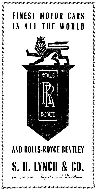In 1948, S. H. Lynch (located at 2106 Pacific, at Olive) was one of only three Rolls dealerships in the county, the others being in New York and Los Angeles. In postwar Britain, American dollars were in such demand that a Rolls spokesman said that at least 75% of his company’s production was earmarked for the U.S. — American orders would take priority over their U.K. counterparts.