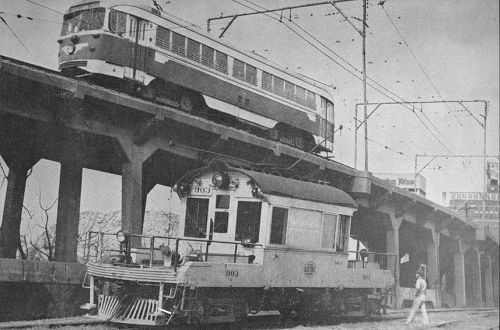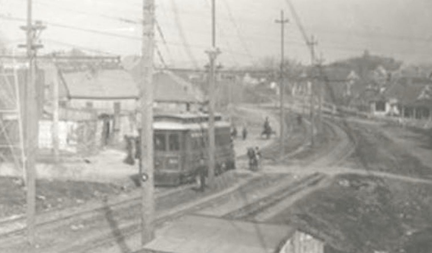 And here’s a photo of an interurban trundling along, uncomfortably close to the house: