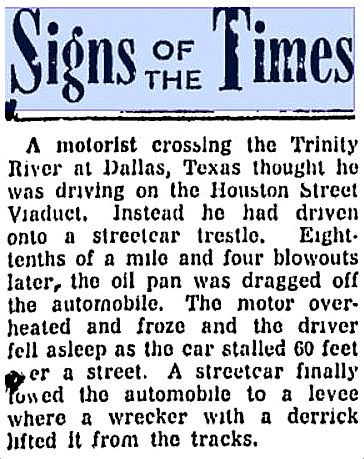 The luxurious splendor of the somewhat isolated Cedar Crest apparently emitted a high-pitched siren-call which was frequently heard by area bandits: it was burgled quite a few times (at least 3 times in one 12-month period). After one incident in which a burglar wandered through the house in the dead of night and woke Mrs. Daniel as he stood over her as she lay in bed, Oak Cliff police said that they found no trace of the trespasser but saw where he had hitched his horse and get-away buggy, out back in the orchard. In another incident a few months later, Mrs. Daniel — who had been alerted by an employee that the family car was about to be stolen from the “automobile house” — ran out to the garage armed with a revolver and fired three shots at the thieves, scaring them away (I don’t think she was attempting to fire warning shots — I think she fired AT them). This may seem extreme, but the newspaper noted that the value of the car (in 1915) was an eye-watering $4,000 (more than $110,000 in today’s money!). I don’t know where Mr. Daniel was during all this, but Mrs. Daniel was not about to let that car go anywhere!