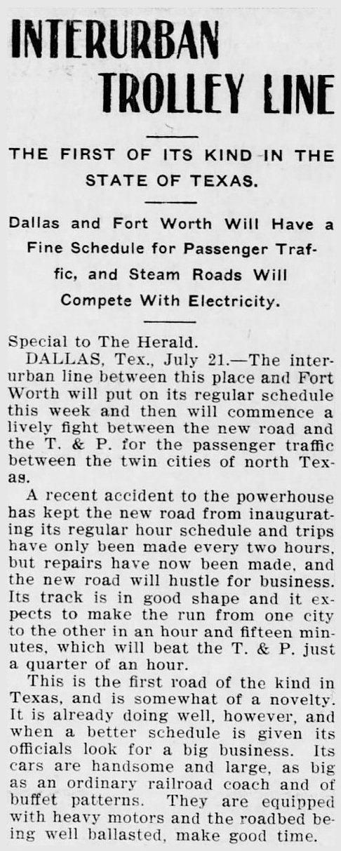 Photo of the interurban from the 2017 Oak Cliff Advocate article “Law Firm Renovates Historic Mansion on Jefferson” by Rachel Stone (click the link at the bottom of the article to read a piece published in Texas Lawyer which includes information on specific restoration/renovation work done on the house).