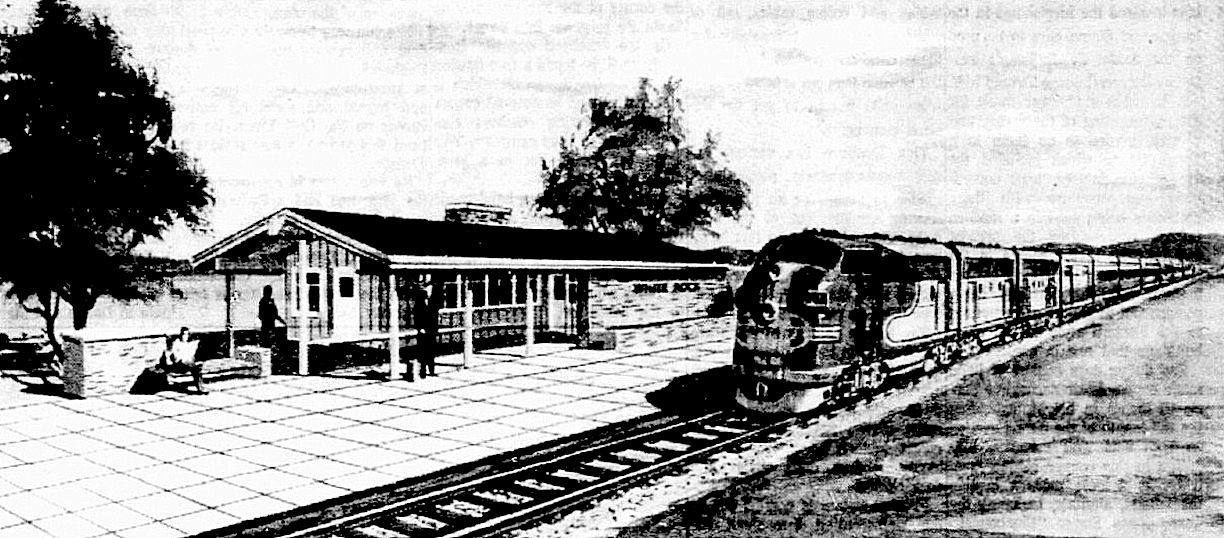 The new track — touted by a Santa Fe ad as being “the longest main line construction over new territory by any railroad in 25 years” — was important because it offered passengers from Dallas the ability to travel for the first time directly to Chicago without having to change trains. It also reduced freight line distances by 65 miles. The swanky streamlined Texas Chief shuttled passengers between Dallas’ Union Station and Chicago in about 19 hours — travel time between Union Station and the new White Rock Station was 25-30 minutes.
