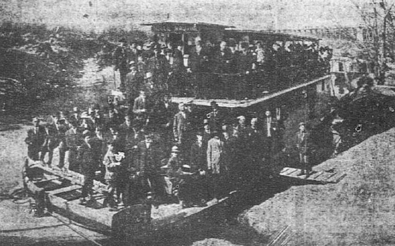 And, lastly, a post-flood photo from 1909, showing builders and contractors onboard, about to head to Lock and Dam No. 1 to check on its progress.