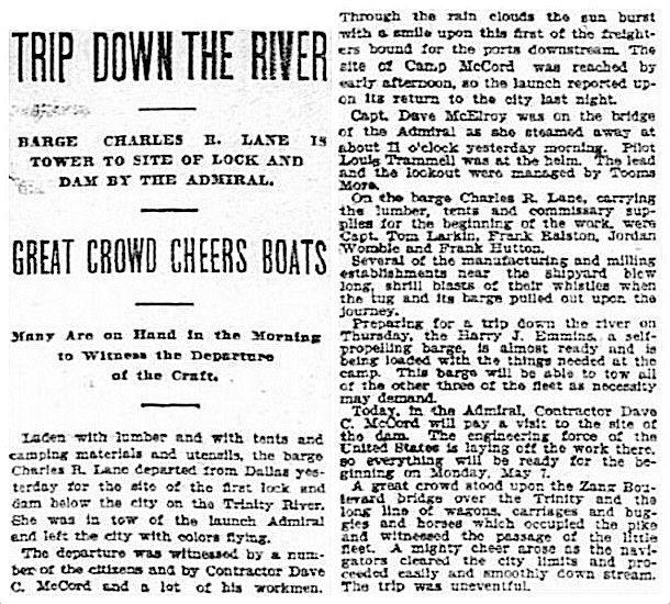 Read the account of what was seen from the boat when it was commandeered by city officials in “West Dallas Trip Proves Thrilling,” published in the DMN on May 26, 1908, here.